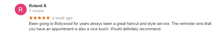 Been going to Bollywood for years always been a great haircut and style service. The reminder sms that you have an appointment is also a nice touch. Would definitely recommend